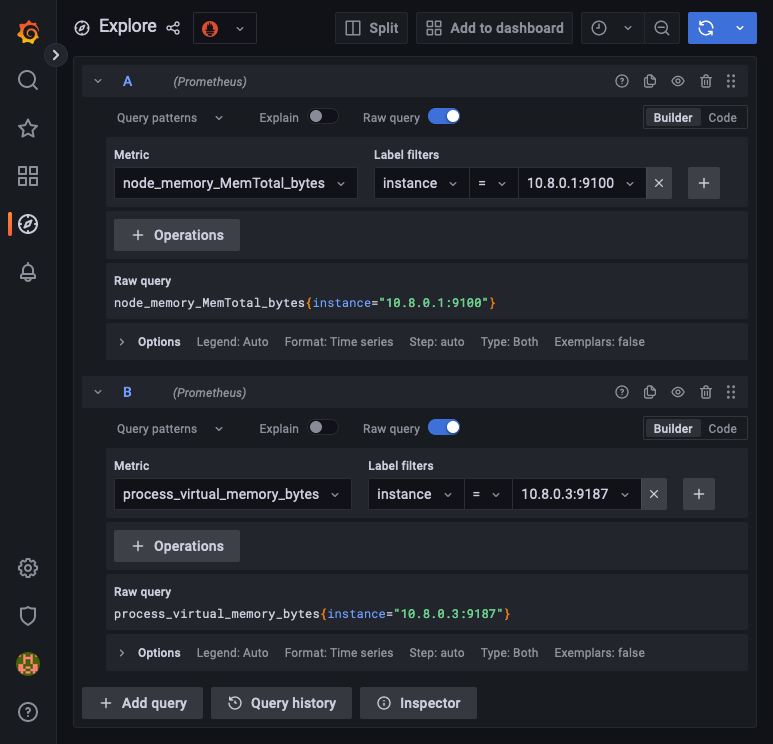 You can now start building dashboards in Grafana using the metrics collected in Prometheus. Open the Grafana web interface as shown in the guide linked above, and use the Explore menu to create queries.